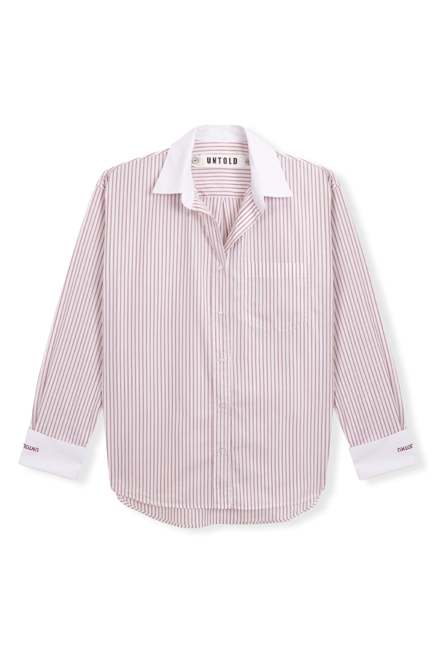 El diseño se enriquece con MY UNTOLD bordado en los puños de la camisa, aportando un toque distintivo. Cuello y puños franceses en blanco.